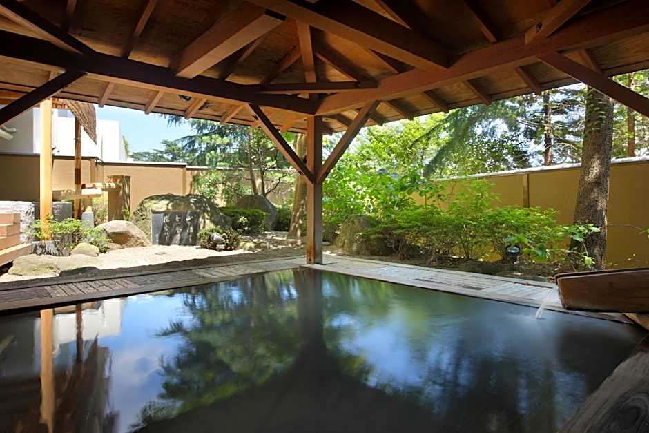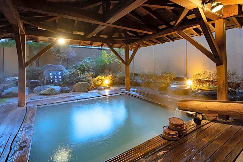 Address: 1-5 Dakeonsen, Nihommatsu-City. On-site perks include a restaurant, private parking (free), shuttle service (free), and a free hot spring bath, plus a sauna. Inside, non-smoking rooms, an elevator, upper-floor access, free toiletries, a bidet, and a bathtub round out the comfort, with a terrace and a kid-friendly buffet for family travelers.
